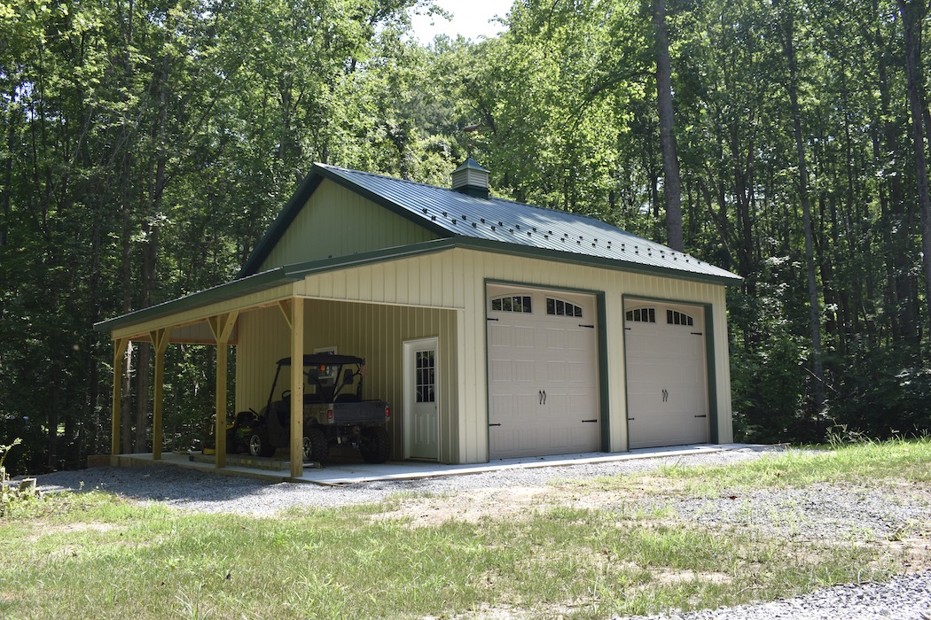 This 28x26x12 2-car pole barn was built in Bumpass, VA, by Superior Buildings.